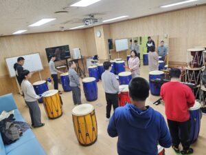 난타 프로그램을 진행하면서 정말 뜻깊은 시간이었습니다. 오늘은 xx씨가 입구에서부터 대기하며 기다리는 모습이 인상 깊었고, xx씨와 xx씨는 치과 검진으로 인해 아쉽게 참석하지 못하셨습니다. 지난주 휴강으로 인해 강사 선생님과 이용자분들 모두 조금은 감을 잃은 듯 보였지만, 그럼에도 불구하고 빠르게 감을 되찾고 서로 의지하며 프로그램에 임하는 모습이 매우 인상적이었습니다.