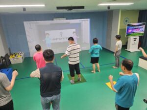 또한 프로그램 시작 전 준비운동을 성실히 마치고, 패널티킥 체험 후 볼링을 진행했습니다. X희씨는 동작이 느리고 힘이 약해 공이 멀리 가지 못하거나 다시 굴러오지 않는 상황이 있었는데, 그 과정에서 센서가 인식되어 공이 예기치 않게 굴러가자 현장에 있던 모든 이용자분들이 웃음을 터뜨리며 즐거워했습니다. 처음에는 본인도 조금 민망해했지만, 이내 함께 웃으며 더욱 편안하고 즐겁게 참여하는 모습을 보여주었습니다.
